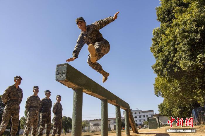图为武警民卒正停止经由过程阳关道练习。刘朝 摄