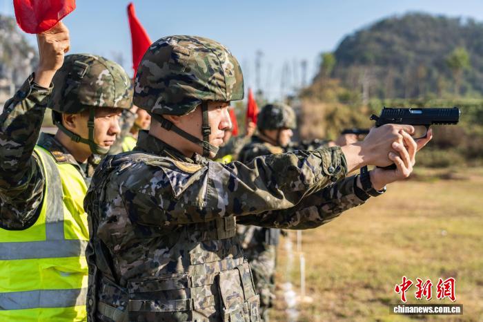 图为武警民卒正正在停止脚枪粗度射打。施朝洲 摄