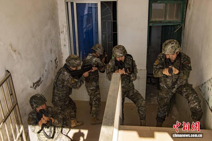 图为武警民卒慎密联合冲入方针衡宇。刘朝 摄
